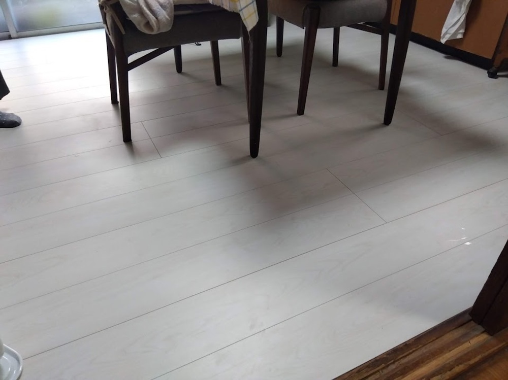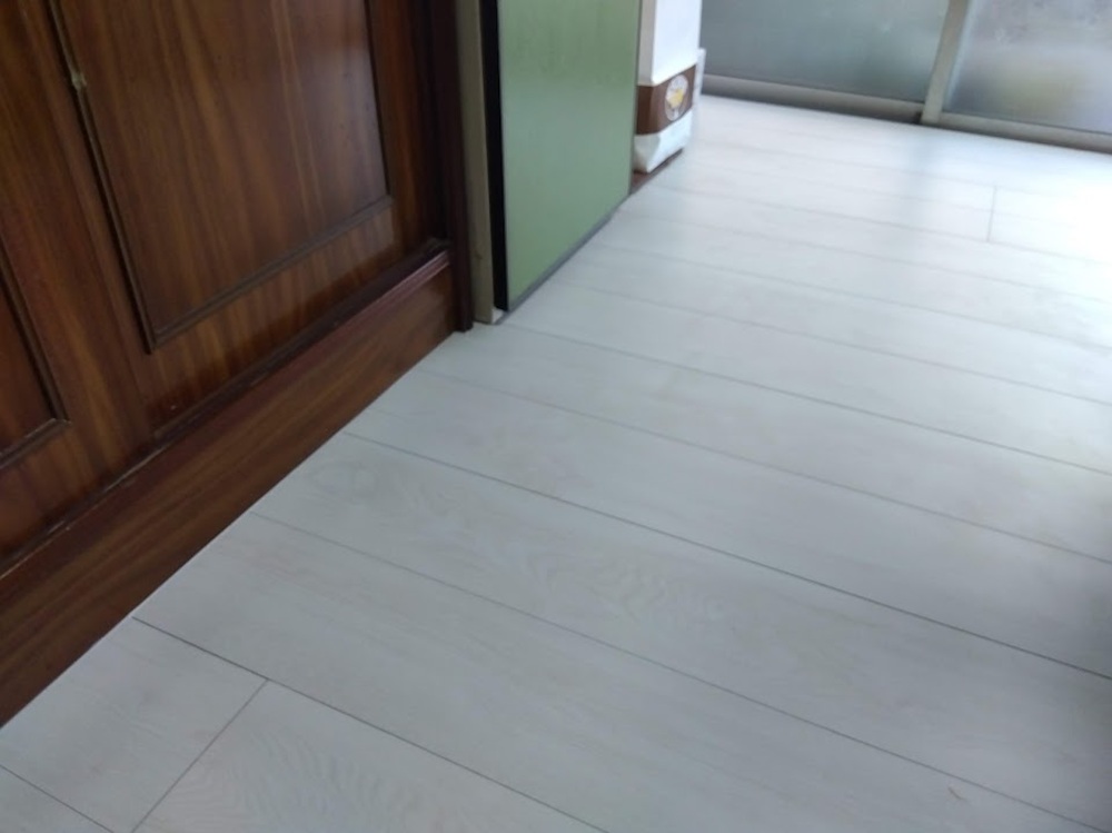 ▶キッチン床へのフローリング材の重ね貼り工事