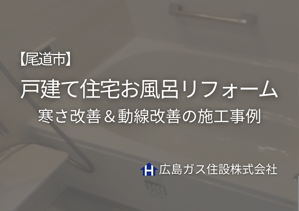 皆さまこんにちは、広島ガス住設(株)福山支店です。 冬になると「浴室が寒い」「洗濯が屋外でつらい」「脱衣場が狭… 続きを読む 尾道市の戸建て住宅でお風呂リフォーム|寒さ改善&動線改善の施工事例