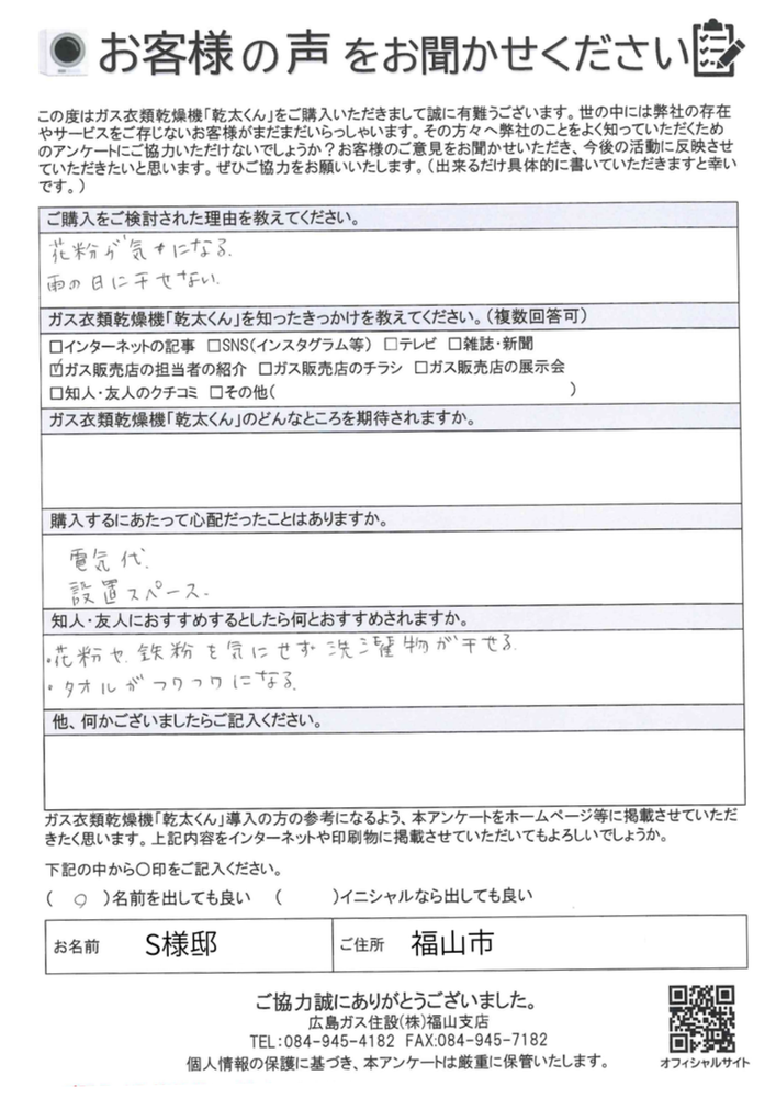 お客様の声/福山市S様邸