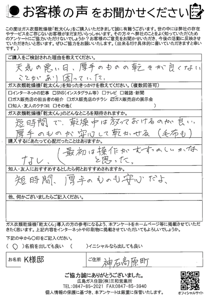 お客様の声/神石高原町K様邸