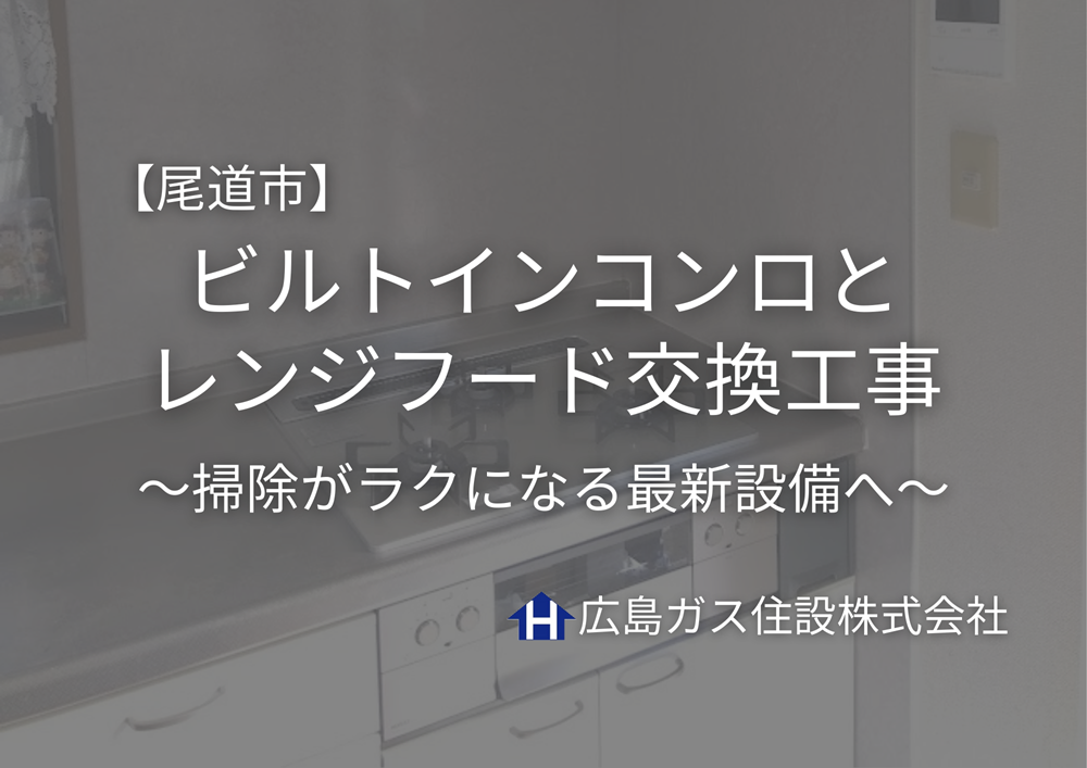 【尾道市】20年使用のビルトインコンロとレンジフードを同時交換|掃除がラクになる最新設備へ 皆さまこんにちは、広島ガス住設(株)福山支店です。 尾道市の戸建て住宅にて、20年以上使用されていたビルトイン… 続きを読む 【尾道市】20年使用のビルトインコンロとレンジフードを同時交換|掃除がラクになる最新設備へ